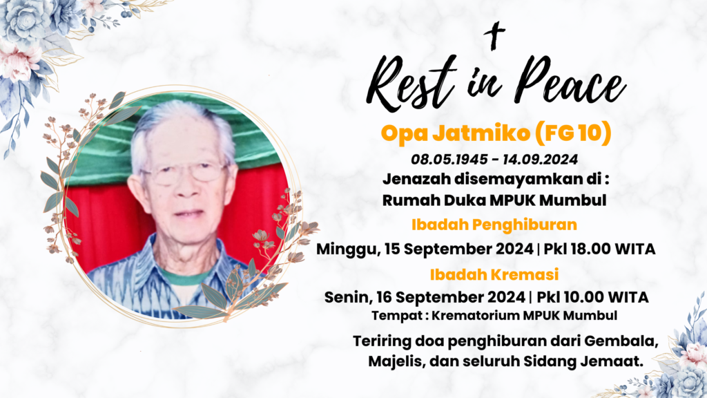 INFO DIAKONIA (SUKA DUKA GPT. BAITHANI)Roy09/30/2024 Informasi dan Pengumuman Telah dipanggil Tuhan Telah lahir: Timotheos Calvin Tanuwijaya