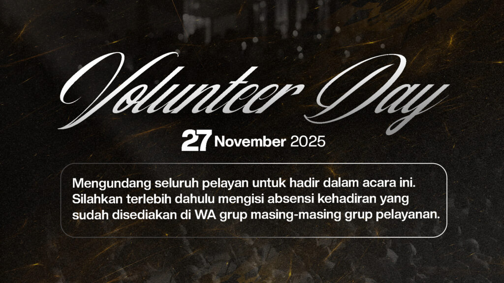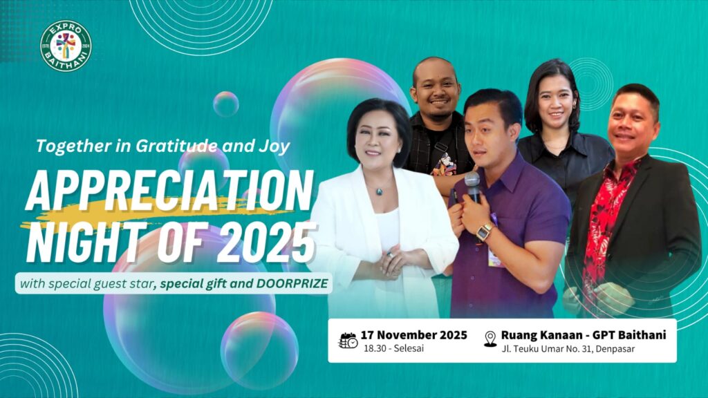 INFO KEGIATAN DI BULAN NOVEMBER 2025Roy10/31/2025 Informasi dan Pengumuman Peneguhan Pernikahan Virtous Ladies Baptisan Air Teens Connect Group Youth Night of Worship Expro Baithani Fellowship Diakonia Baithani (Donor Darah) Baithani Volunteer Day 2025 Ibadah Werdha