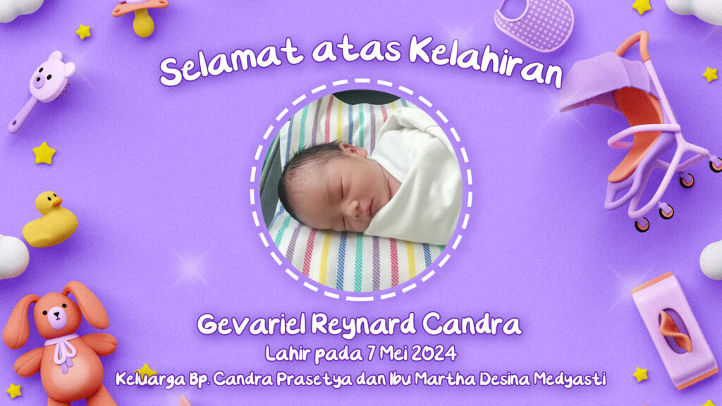 INFO KELAHIRAN | Mei 2024Roy05/31/2024 Informasi dan Pengumuman Selamat Atas Kelahiran:“Gevariel Reynard Candra”